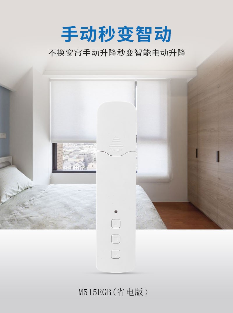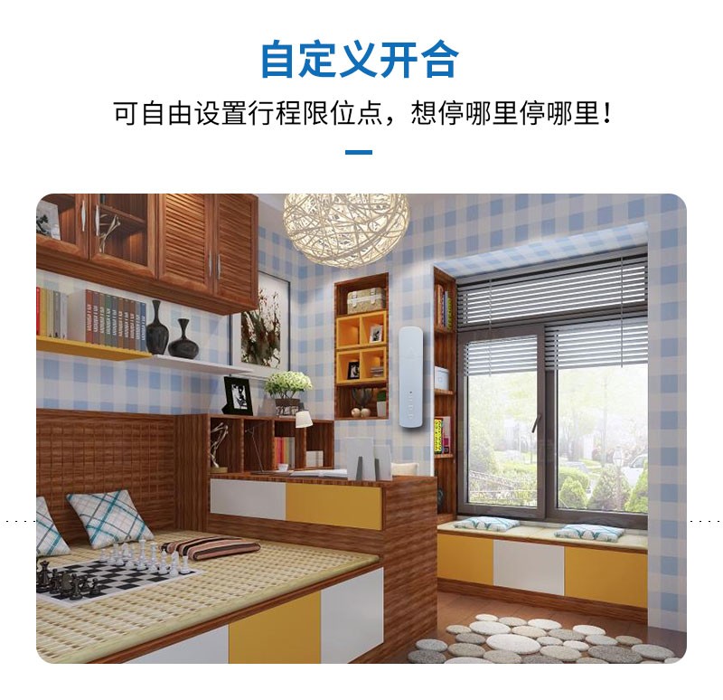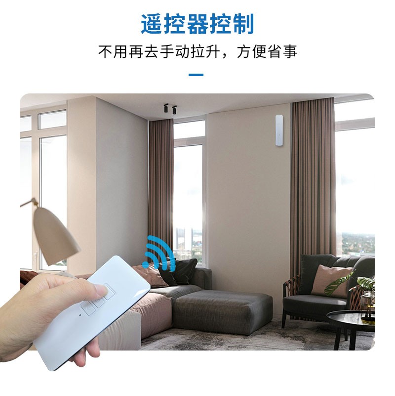 此產(chǎn)品適用于拉珠卷簾,可以把傳統(tǒng)的拉珠卷簾改變?yōu)橹悄茈妱哟昂煟惭b簡單,操作方便。安裝后可通過遙控器、語音、手機APP等控制窗簾升降。